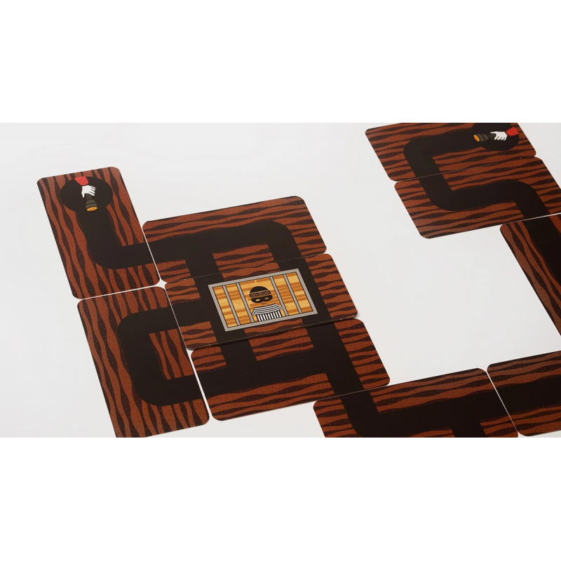 Un prisionero de alta seguridad está intentando escapar de su celda a través de los túneles. ¿Seréis capaces de unir vuestras fuerzas (y vuestras cartas) para detenerle? Colocad las cartas para bloquear las salidas de su túnel y evitar su fuga.