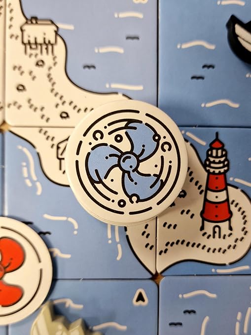 ¡Y eso no es todo! Una vez que os hayáis familiarizado con el juego básico, podéis incorporar una o dos mini expansiones incluidas en la caja. Cada una de estas expansiones añade algunas losetas que os proporcionan nuevas opciones de puntuación al final de la partida. Por un lado, podéis añadir los aerogeneradores, que otorgan puntos por las losetas de mar abierto que tengan adyacentes; por el otro, los embarcaderos, que dan puntos adicionales por cada edificio presente en las zonas terrestres a las que estén conectados.