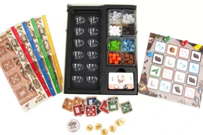 Para ello, tendremos que mover a nuestro pequeño meeple de barista por el tablero de ingredientes recolectando aquellos que necesitemos para entregar a tiempo los pedidos que nos vayan haciendo. A medida que vayamos terminando cafés activaremos mejoras que nos harán la vida un poco más fácil… ¡Pero cuidado con confiarse, que la hora punta puede llegar a ser muy ajetreada!
