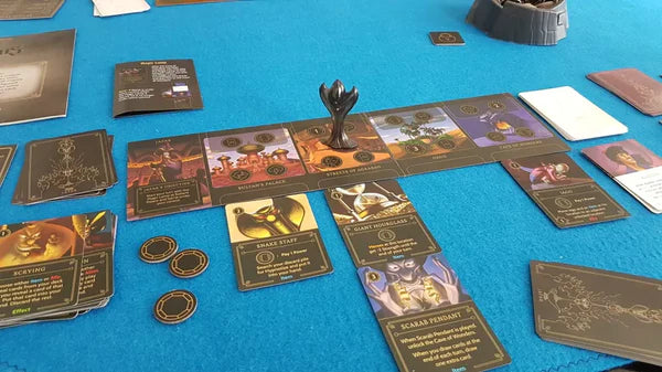 En un turno, el jugador activo mueve su personaje a una ubicación diferente en su tablero de jugador, toma una o más acciones visibles en ese espacio (a menudo jugando cartas de su mano), y luego recarga su mano a cuatro cartas. Las cartas son aliados, objetos, efectos, condiciones y (para algunos personajes) maldiciones. Necesitas usar tus cartas para cumplir tu condición única de victoria.