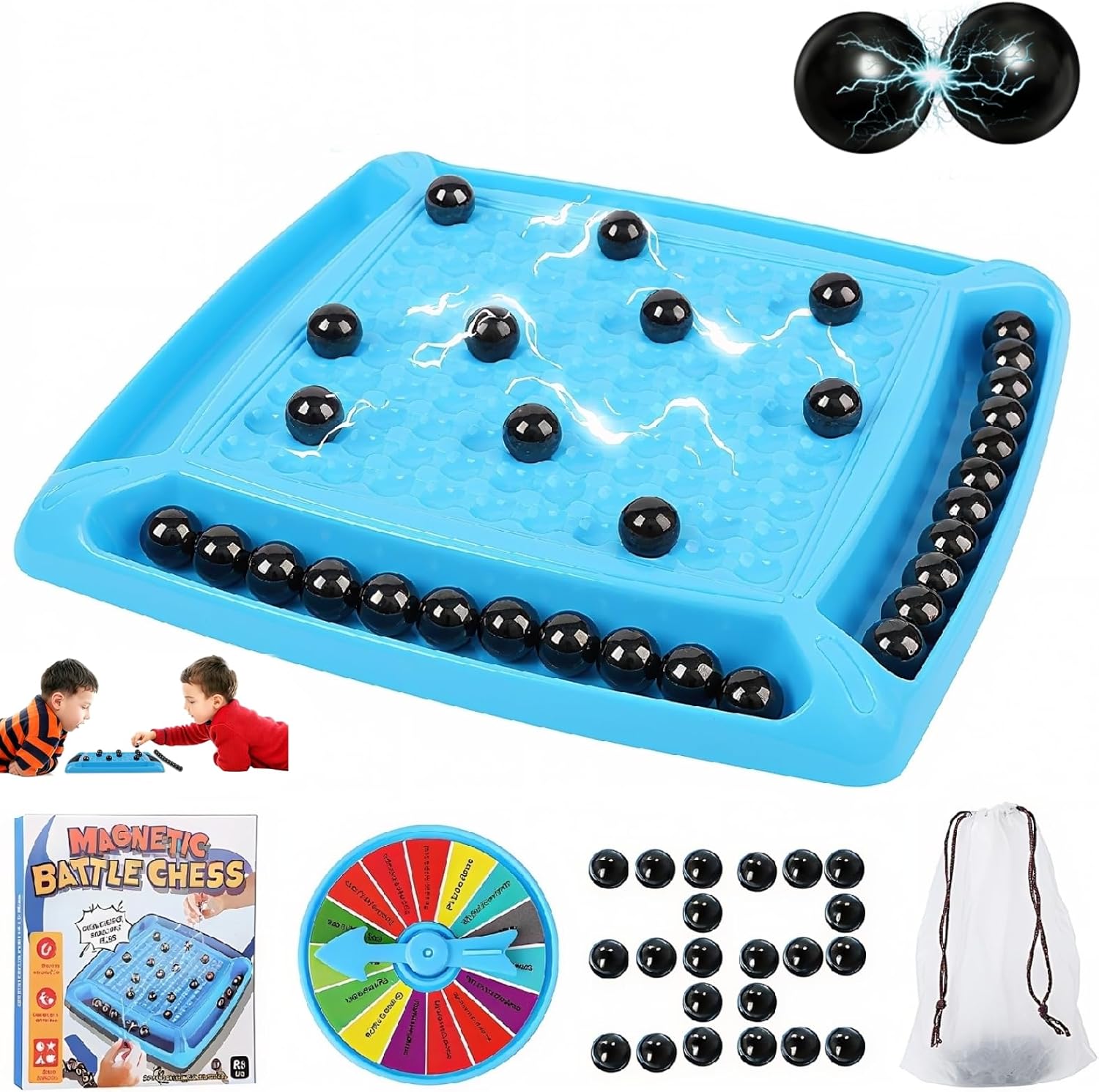 - Juego de Ajedrez Magnético: 1 elegante caja de regalo, 1 Tablero de Ajedrez Magnético duradero, 1 divertida ruleta de juego, 32 piezas con imanes magnéticos fuertes y 1 práctica bolsa de almacenamiento.