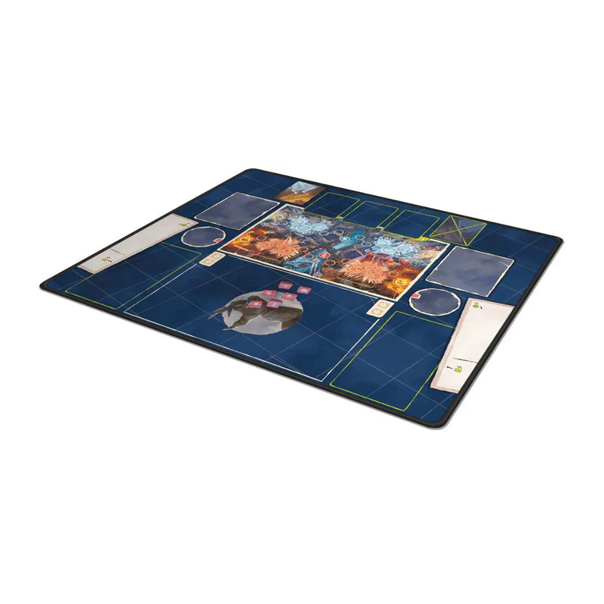 Lleva tus partidas a King of Tokyo Duel a otro nivel con este tapete exclusivo que muestra el tablero central y los espacios para las cartas, las fichas y los tableros de jugador. Fabricado en neopreno, mide 50 x 60 centímetros y tiene los bordes cosidos para garantizar su resistencia y durabilidad.