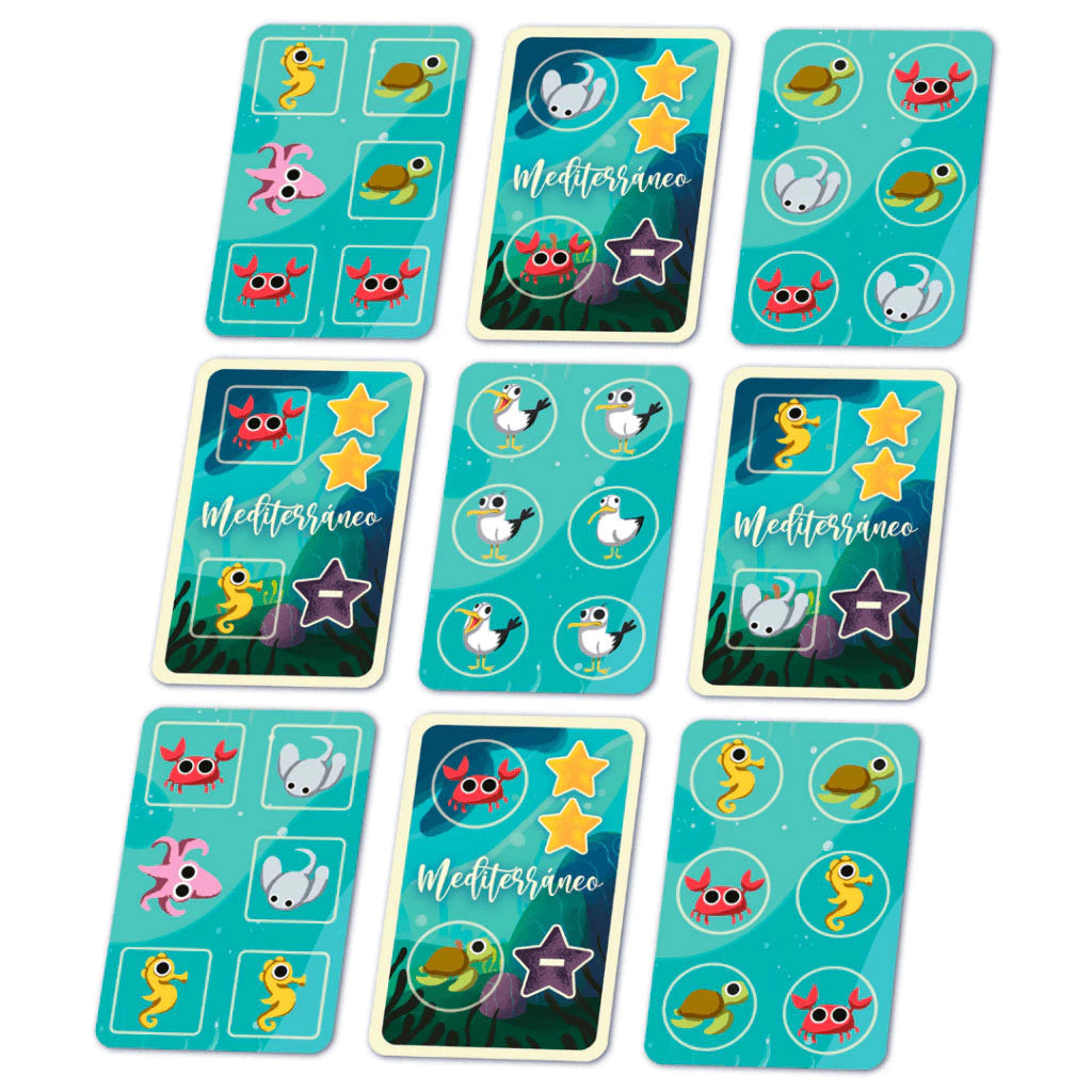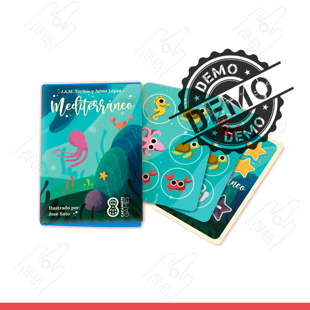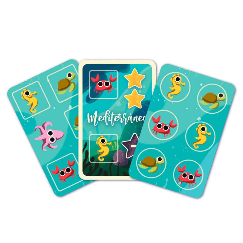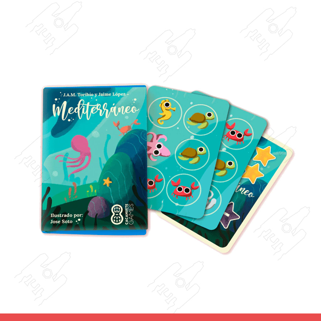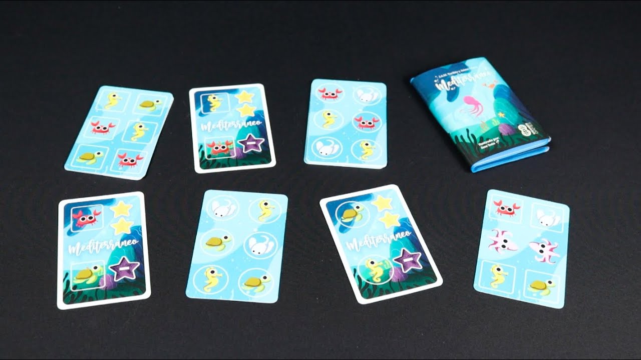 Juego de mesa abstracto de 18 cartas para dos jugadores donde realizaremos una expedición subacuática por el Mediterráneo. Los jugadores deberán formar un mar común de cartas en el que irán apareciendo u ocultándose distintas criaturas marinas puntuando para cada uno de distinta manera.
