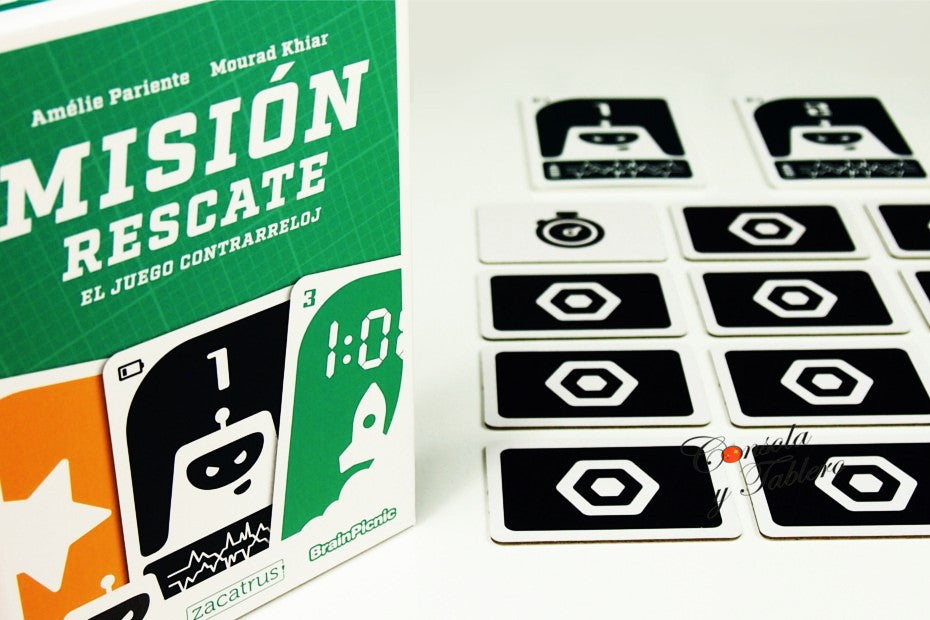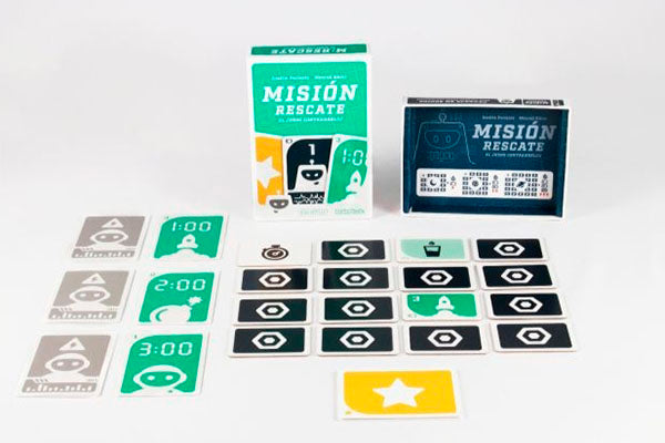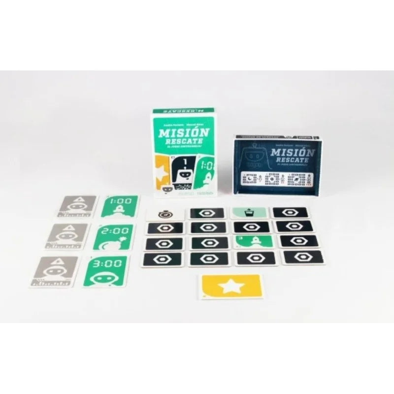 Misión Rescate es un juego cooperativo y en tiempo real para toda la familia, donde el equipo debe rescatar astronautas atrapados en una base espacial antes de que se acabe el tiempo.