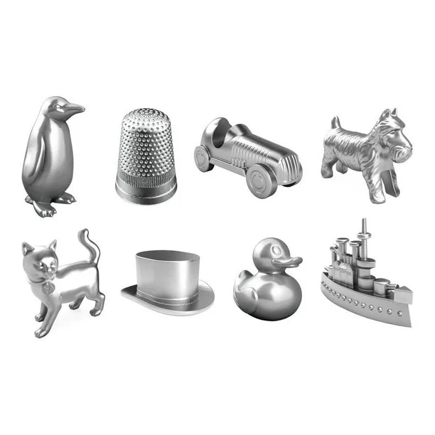 Nuevos tokens que incluyen figuras de auto, sombrero, barco, patito, gatito, perrito, dinosaurio y pingüino para agregar un toque de diversión y originalidad a tu juego.