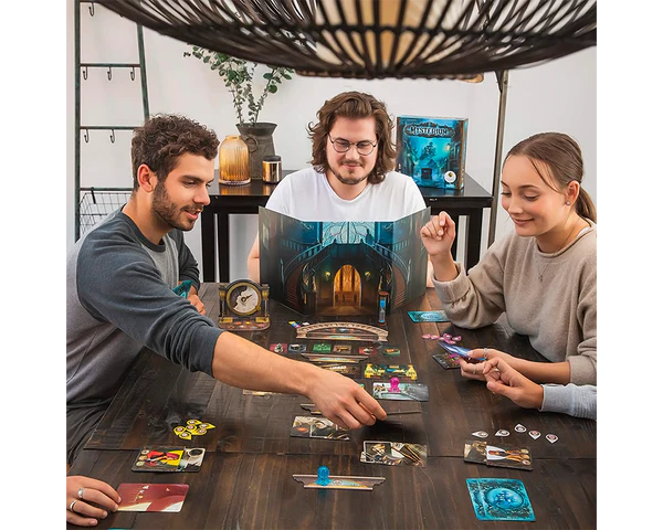 6 fichas de intuición, 6 sobres, 6 indicadores, 21 Fichas, 1 tablero reloj, 4 tableros de progreso, 108 cartas, 1 reloj de arena, 1 marcador de adivinación, 1 pantalla e instrucciones.