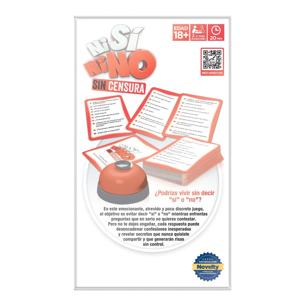 ¿Listos para llevar la noche al siguiente nivel? Ni Sí Ni No Sin Censura es el juego de mesa perfecto para fiestas entre adultos, donde el reto es tan simple como evitar dos pequeñas palabras... hasta que se vuelve imposible.