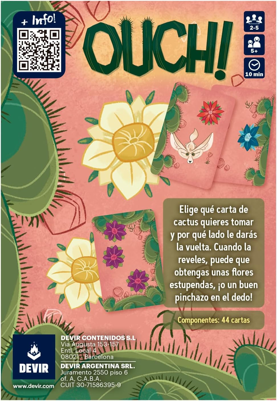 Ouch! Está pensado para jugar con los más pequeños de casa. Si es el caso, puedes ajustar la dificultad y prescindir de algunas reglas, como la de los animales del desierto o la penalización de las flores rojas. ¡Salid de expedición y volved con los ramos más vistosos!