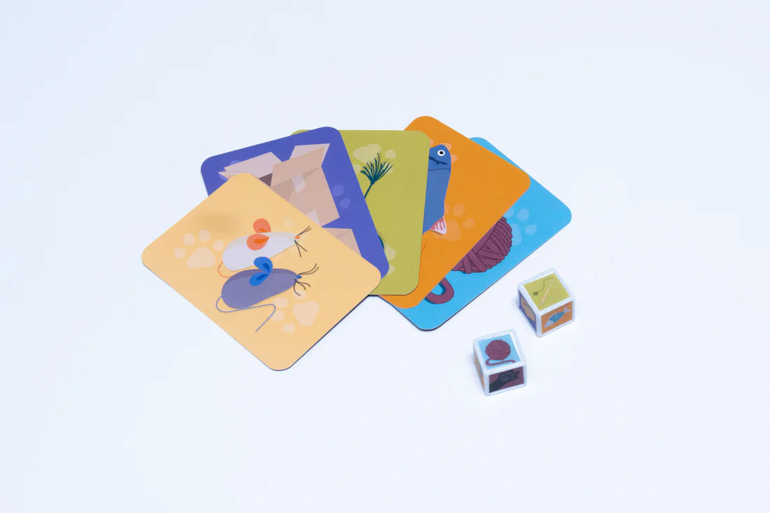 ✔ Captura cartas de juguetes como ratones, estambre y cajas.
