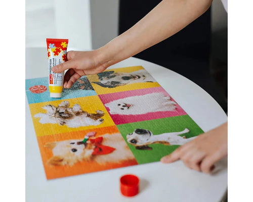 - Coloca la esponja del pegamento sobre el rompecabezas y presiona levemente hasta que salga el líquido.