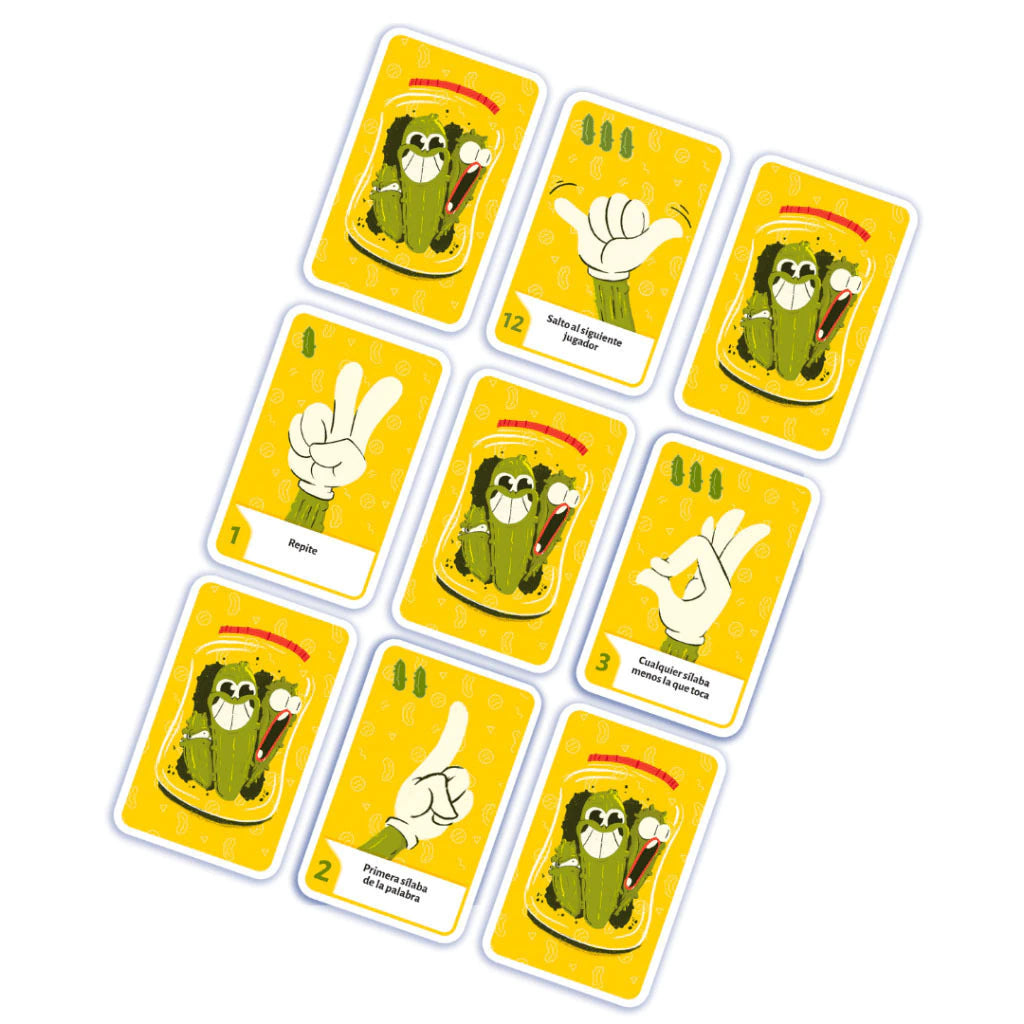 Realiza gestos y utiliza sus efectos de la manera más eficaz. Si alguno se equivoca, es penalizado. El jugador con menos pepinillos al final de la partida será el ganador.