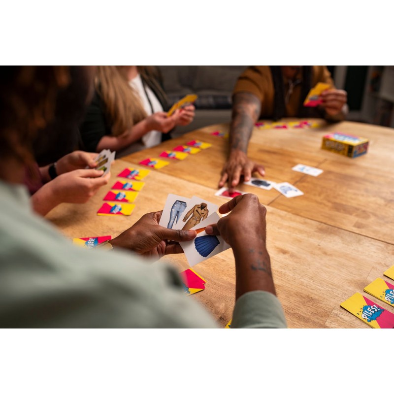 El objetivo es ser el primero en completar seis grupos de cartas iguales, cada grupo con prendas de ropa del mismo estilo pero diferentes colores, intercambiando cartas con la pila central a toda velocidad.