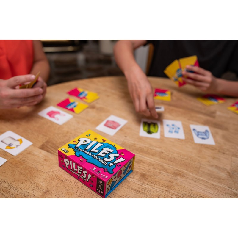 Piles es un juego de cartas ultra rápido y frenético para 2 a 8 jugadores que convierte la mesa en un campo de batalla de reflejos y estrategia sin turnos.