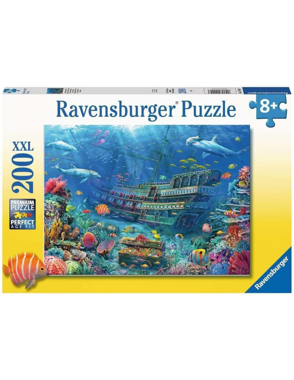 Descubre el océano y sus maravillas con el Puzzle Ravensburger 'Descubrimiento Submarino XXL' de 200 Piezas. Este puzzle es una ventana colorida al mundo submarino, lleno de corales vibrantes, peces exóticos y un majestuoso galeón hundido.