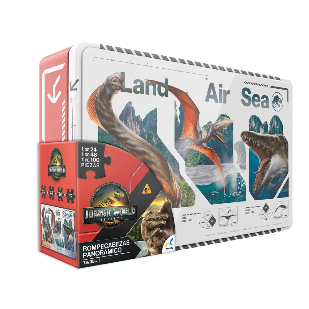 El Rompecabezas Jurassic World Rebirth 3 en 1 te sumerge en el mundo jurásico con tres niveles de dificultad que lo hacen ideal para todas las edades: uno de 24 piezas, otro de 48 y uno más de 100. Cada imagen presenta escenas panorámicas llenas de color, acción y los dinosaurios más icónicos de la saga.
