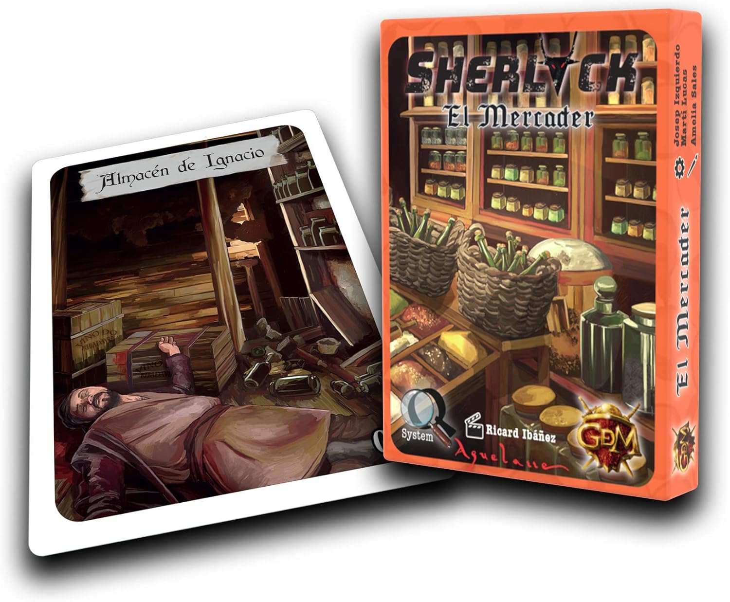 "Sherlock Aquelarre: El Mercader" es un juego de cartas que forma parte de la aclamada "Serie Q", una serie de juegos de investigación y deducción. En esta ocasión, aunando esfuerzos con el decano de los juegos de rol españoles: "Aquelarre". Enfréntate a un caso en Medina del Campo Corona de Castilla en 1420.