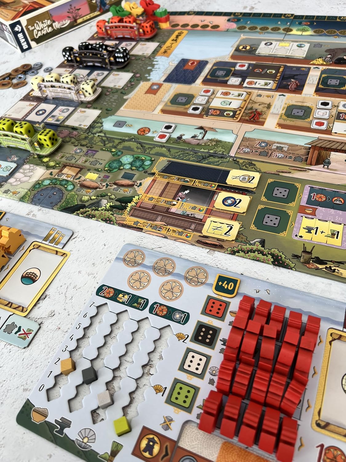 Obra de Sheila Santos e Israel Cendrero (el dúo conocido como Llama Dice, autores de The Red Cathedral) y un apartado gráfico evocador a cargo de Joan Guardiet, The White Castle: Matcha es la primera expansión de The White Castle. Esta expansión incluye una extensión para el tablero central, 1 puente verde, 5 dados verdes, 16 monedas, 26 losetas, 4 tableros personales, 20 figuras de geisha y 39 cartas.