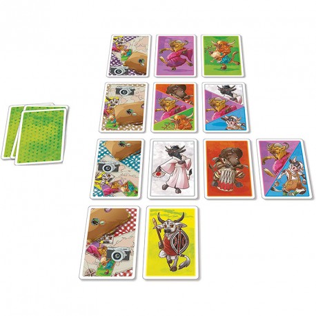 En este juego de cartas, los jugadores viajan por el mundo tomando fotos de diferentes tipos de vacas, que colocan en filas tratando de evitar ser los que recojan las cartas.