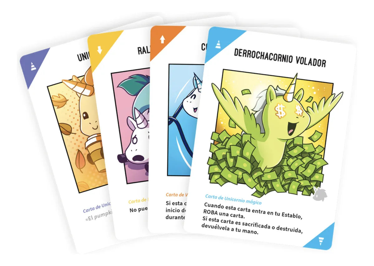 Bajo la premisa de jalo una carta o juego una carta, se va desarrollando el juego. Existen distintos tipos de cartas de efecto: Upgrade, que te ayudan a mejorar el establo; downgrade, que te van a complicar la vida; las mágicas, que afectan tanto al jugador como a los unicornios e instantáneas, que sirven para negar acciones.